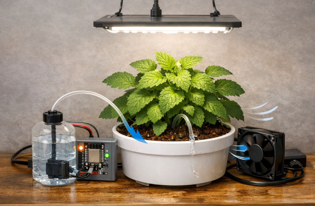 本システムは、ESP32を用いて栽培環境を制御することで、日常管理を自動化する。